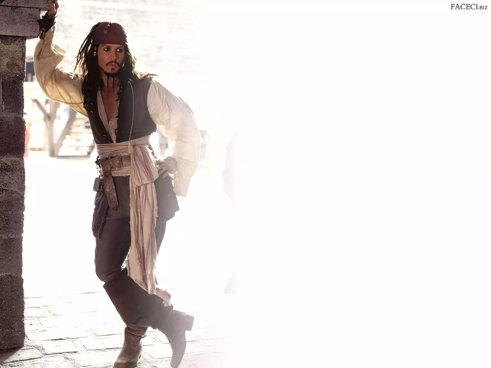 Johnny Depp, Piraci Z Karaibów, tło, białe, mur